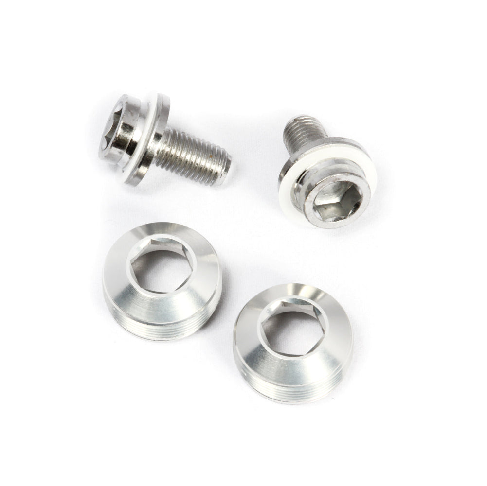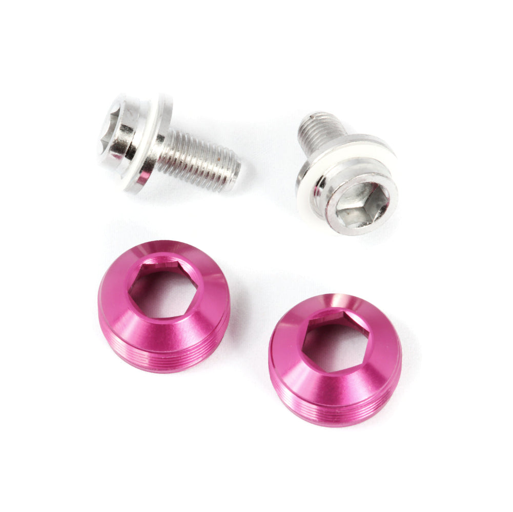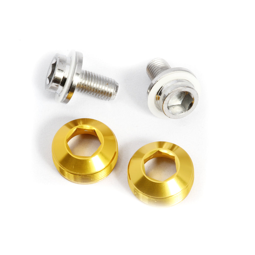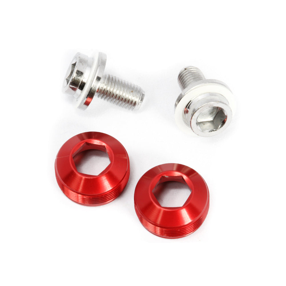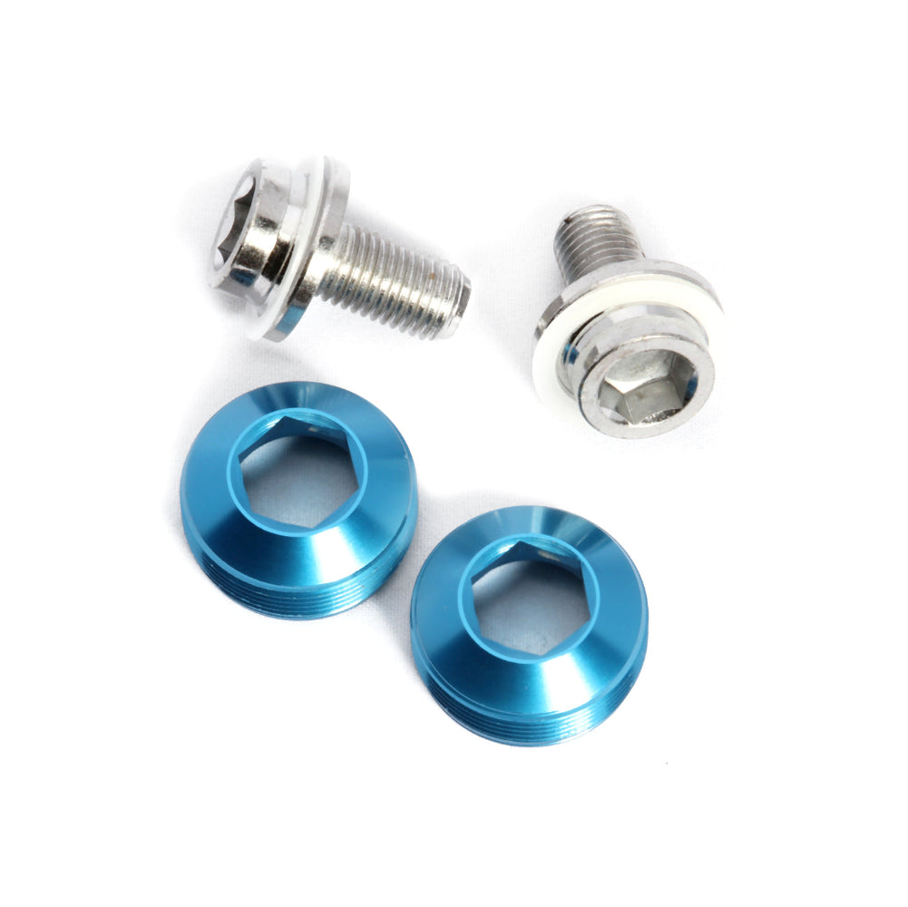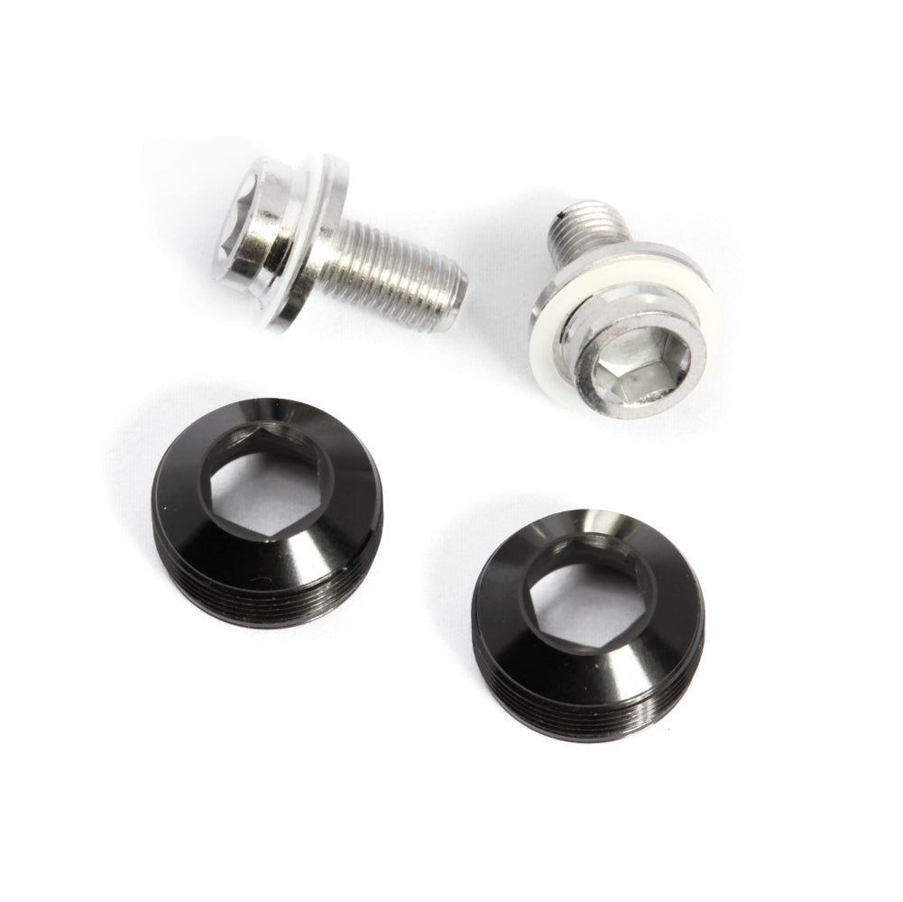 Aluminum dust caps w/ chrome-plated cro-mo M8 crank bolts eliminate the need for a crank puller. Universally suitable for all square taper crank arms with standard M22 extractor threading (such as Sugino, Miche, Andel, etc).