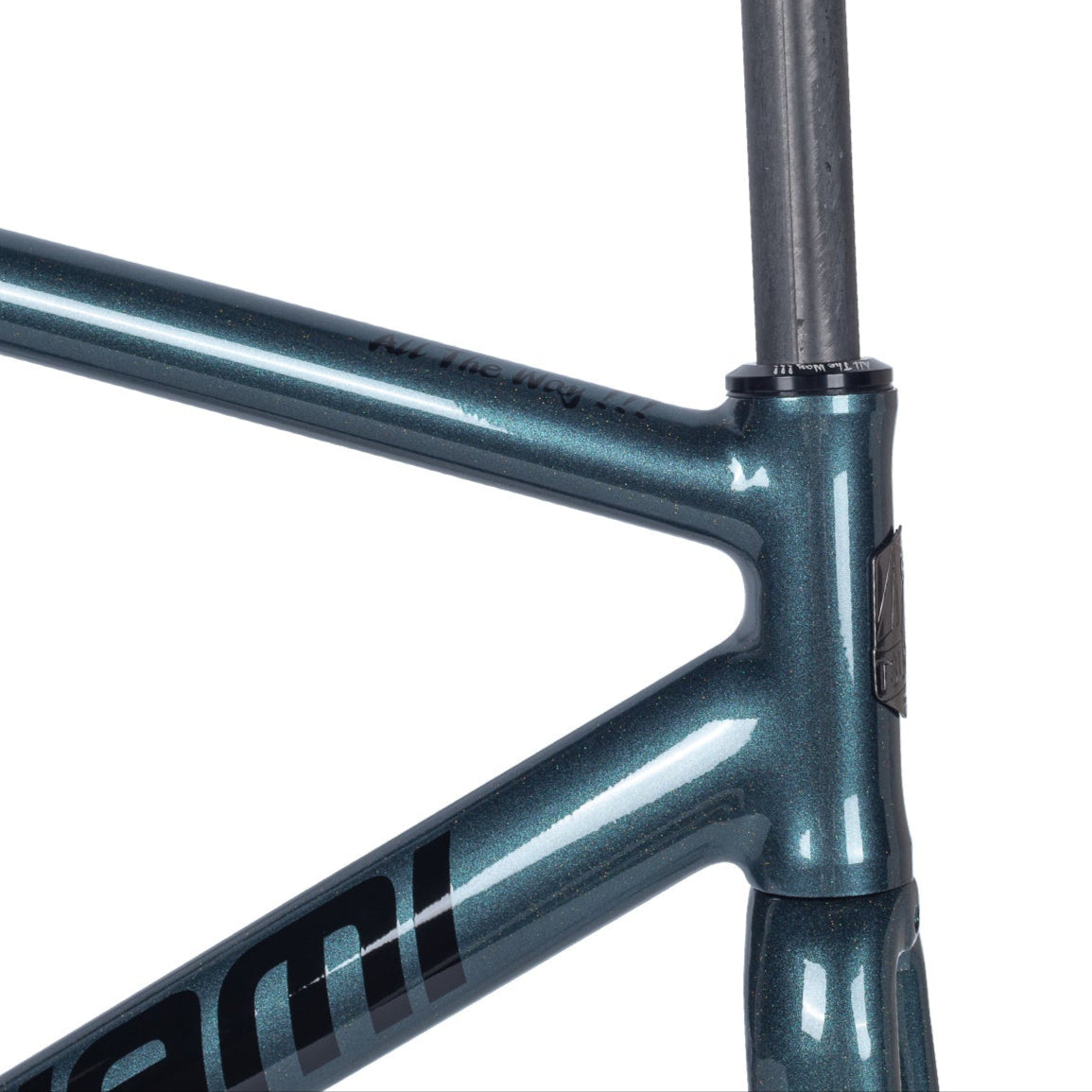 Made of double butted 6061 aluminum alloy tubes with smooth welds, this frameset features a 35mm offset full carbon fork, sealed cartridge integrated headset, double-sided stainless steel dropout plates, excellent paint quality and clearance for most 30mm tires.