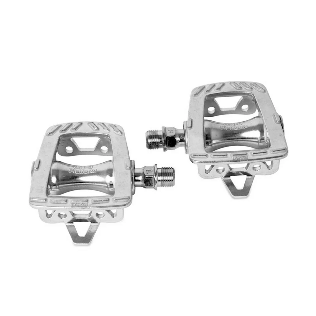 ⓘ This is a single-sided pedal designed to be used with traditional toe clips and straps. And yes, you can use double straps on these pedals.