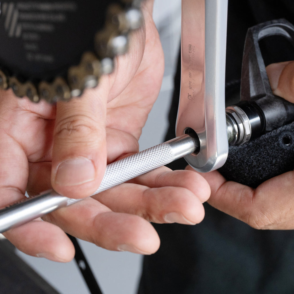 Designed to prioritize a firm grip and torque transmission, the GENEX8 is an X-shaped 8mm hex wrench used to tighten and loosen the hex socket bolts that secure crank arms.