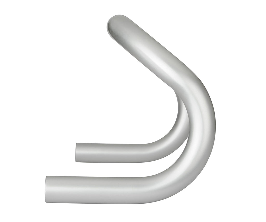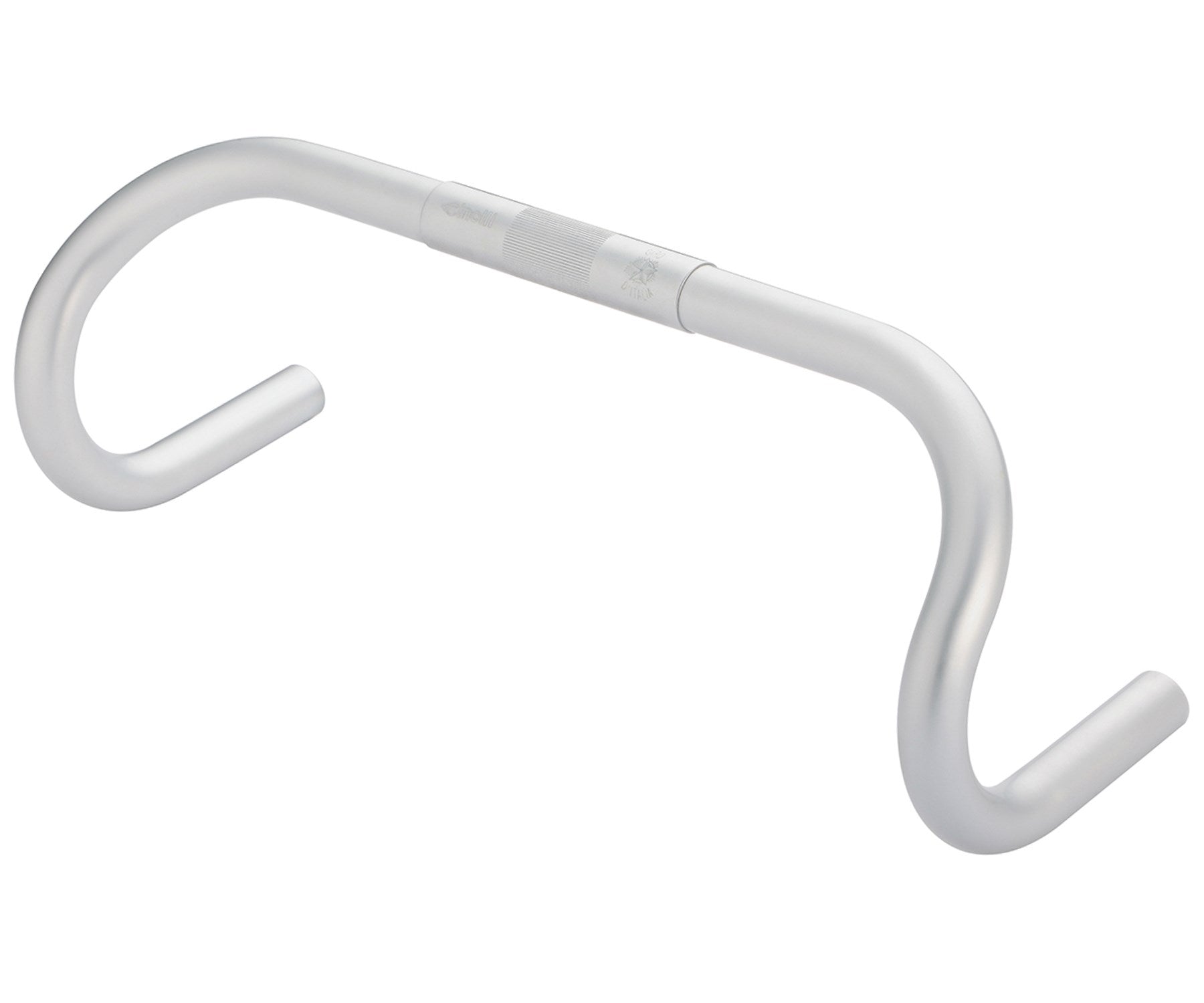 Classic bend with a shallow, traditional round road drop and milky silver anodized finish.
