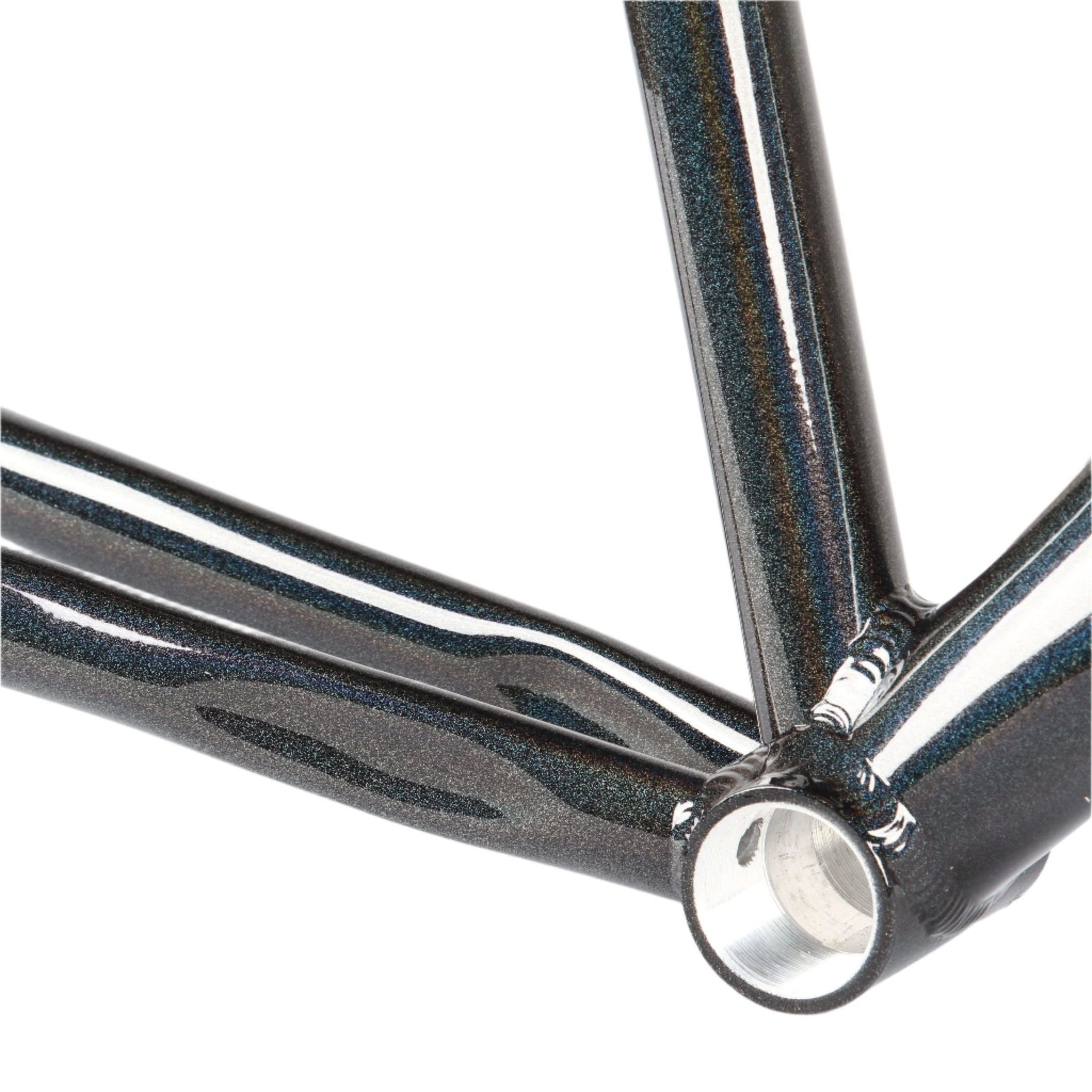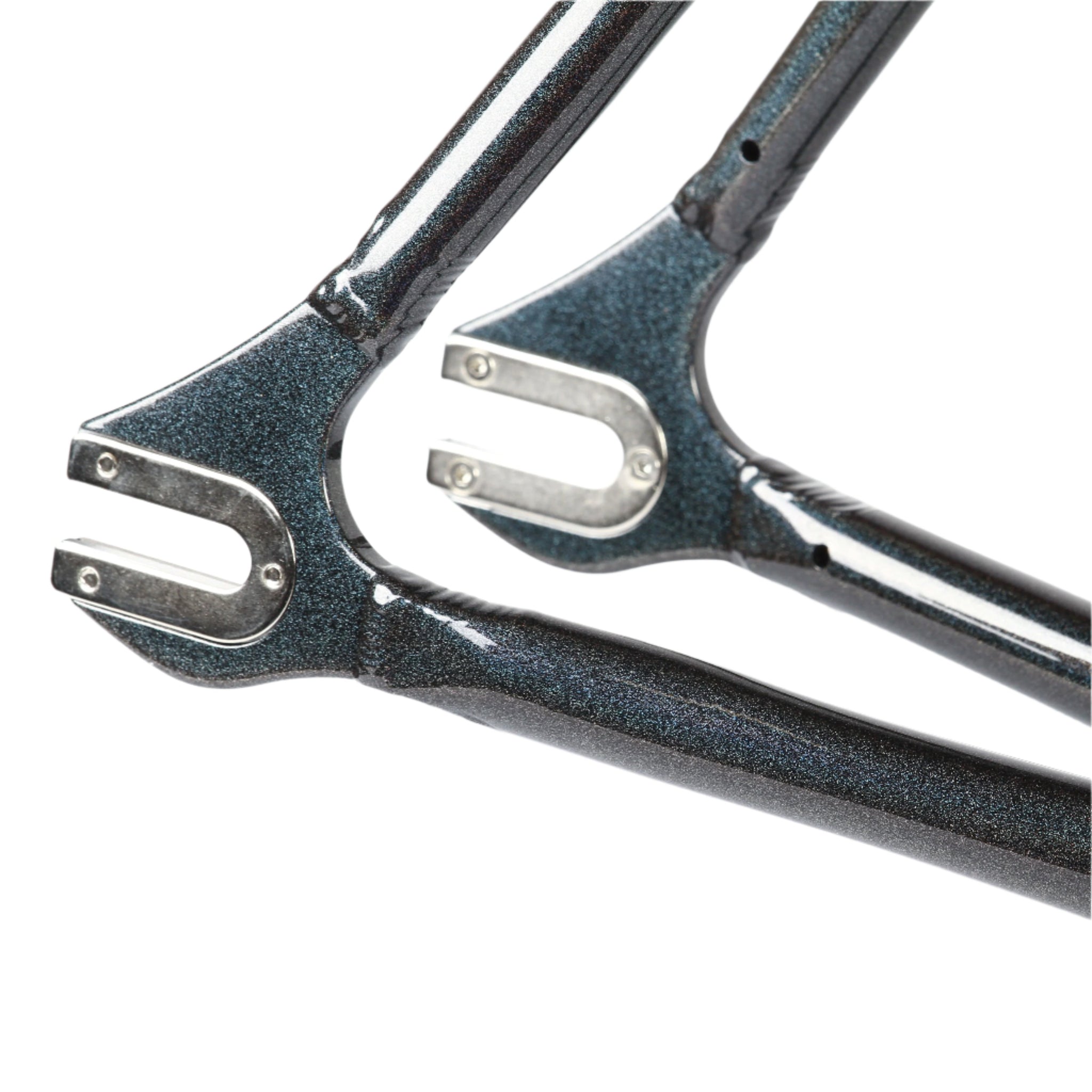 The updated Dolan Pre Cursa features a tapered head tube that enhances the frame's overall stiffness, providing better handling and control, and the addition of double-sided stainless steel dropout plates increases the bike's strength and offers better protection against being marred by track axle hardware.