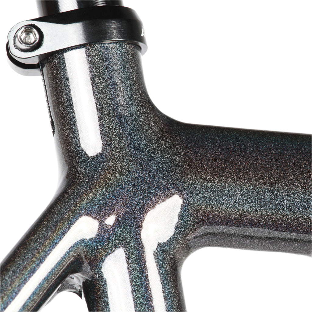 Rock-solid triple butted 7075 AL frame construction, oversized tubing and smooth welds remain the same as previous models, a full carbon Alpina 1 1.8-1.5" tapered fork completes the front end and provides superb handling, and a Starlight Black colorway boasts an amazing multi-color glitter black gloss finish.