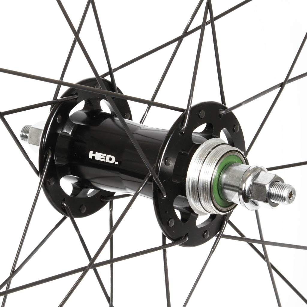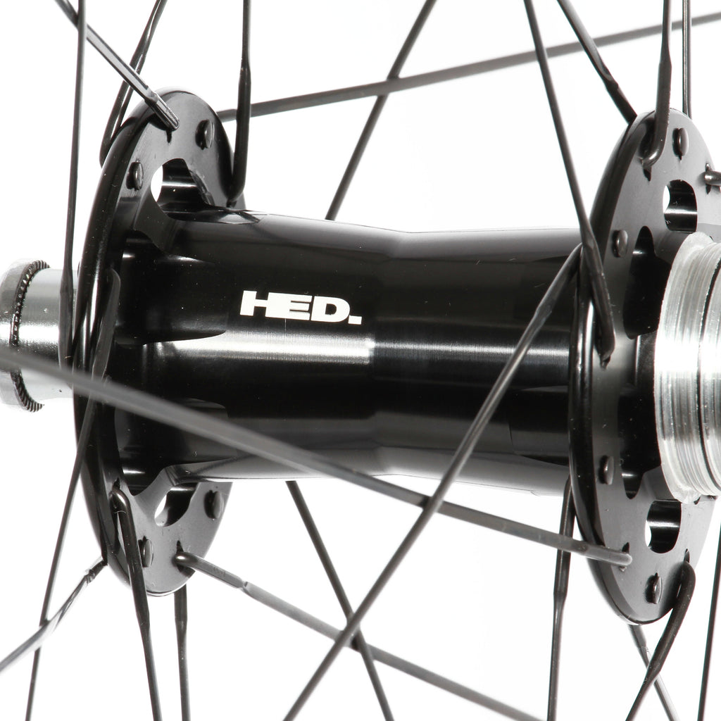 Supplied by HED at our request, these wheels are built using Jet RC Black rims, featuring their patented Turbine Braking Technology - a uniquely textured, all black sidewall that doesn't look like a machined brake surface.