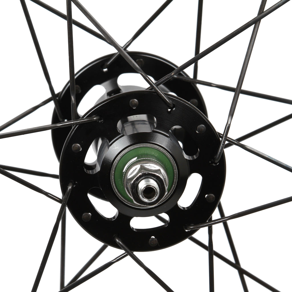 Utilizing a super lightweight carbon fairing manufactured in HED's Minnesota facility fused to a 25mm wide aluminum rim, laced 2X using Sapim CX-Ray bladed spokes to 7075 aluminum HED Sonic high flange hubs w/ stainless steel 6001 sealed cartridge bearings, the Jet Track Series checks all the boxes when sprinting or partaking in longer endurance events.