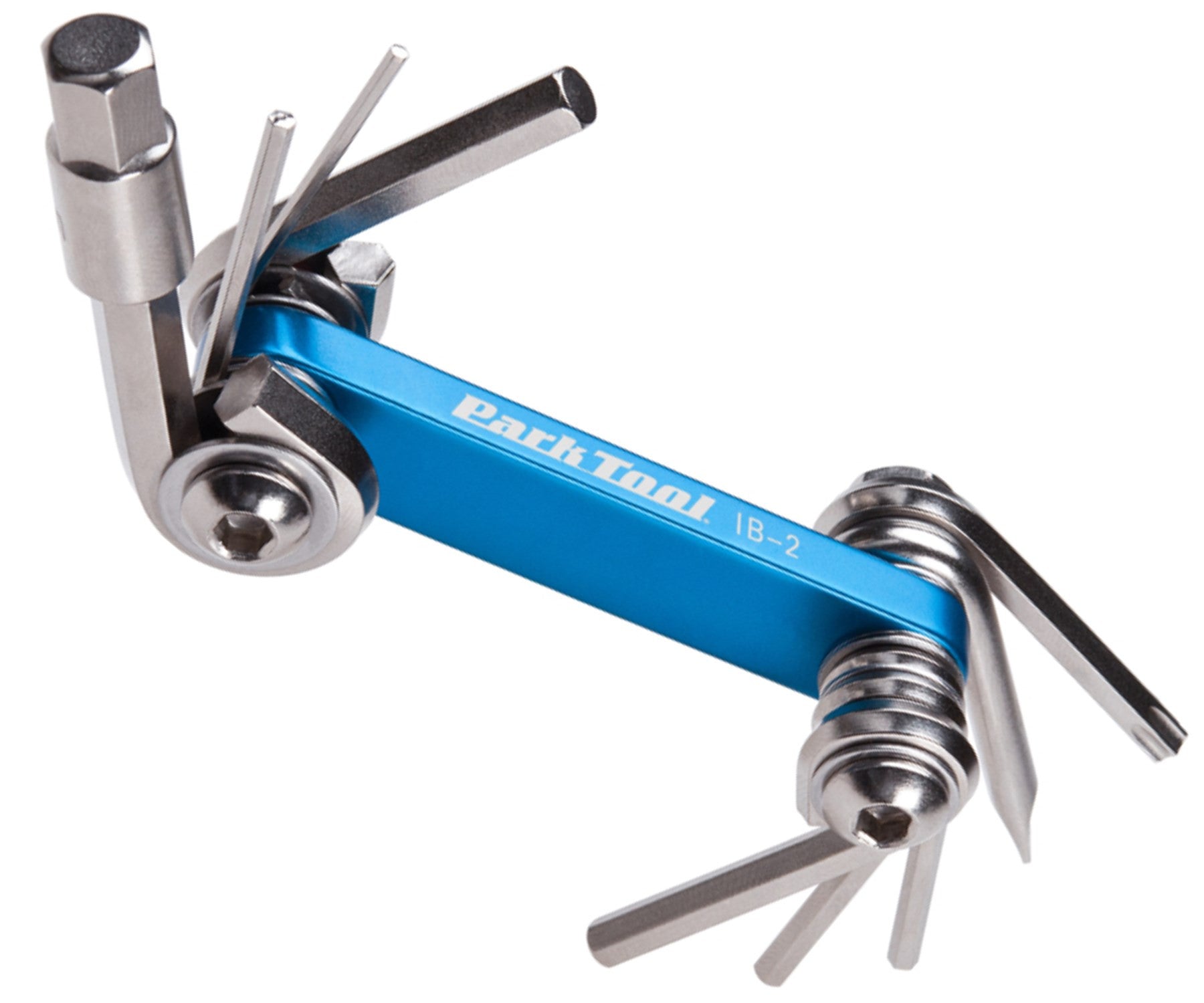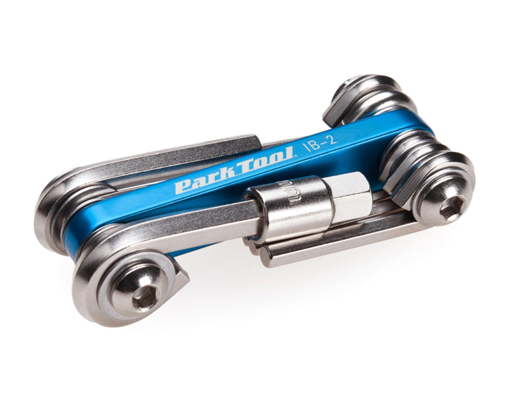 Perfect for taking on rides even if you don't carry a bag, the strong, compact & lightweight IB-2 features Park Tool's unique I-Beam handle surrounded by 10 tools - 1.5, 2, 2.5, 3, 4, 5, 6, and 8mm hex wrenches, a T25 driver and flat blade screwdriver.