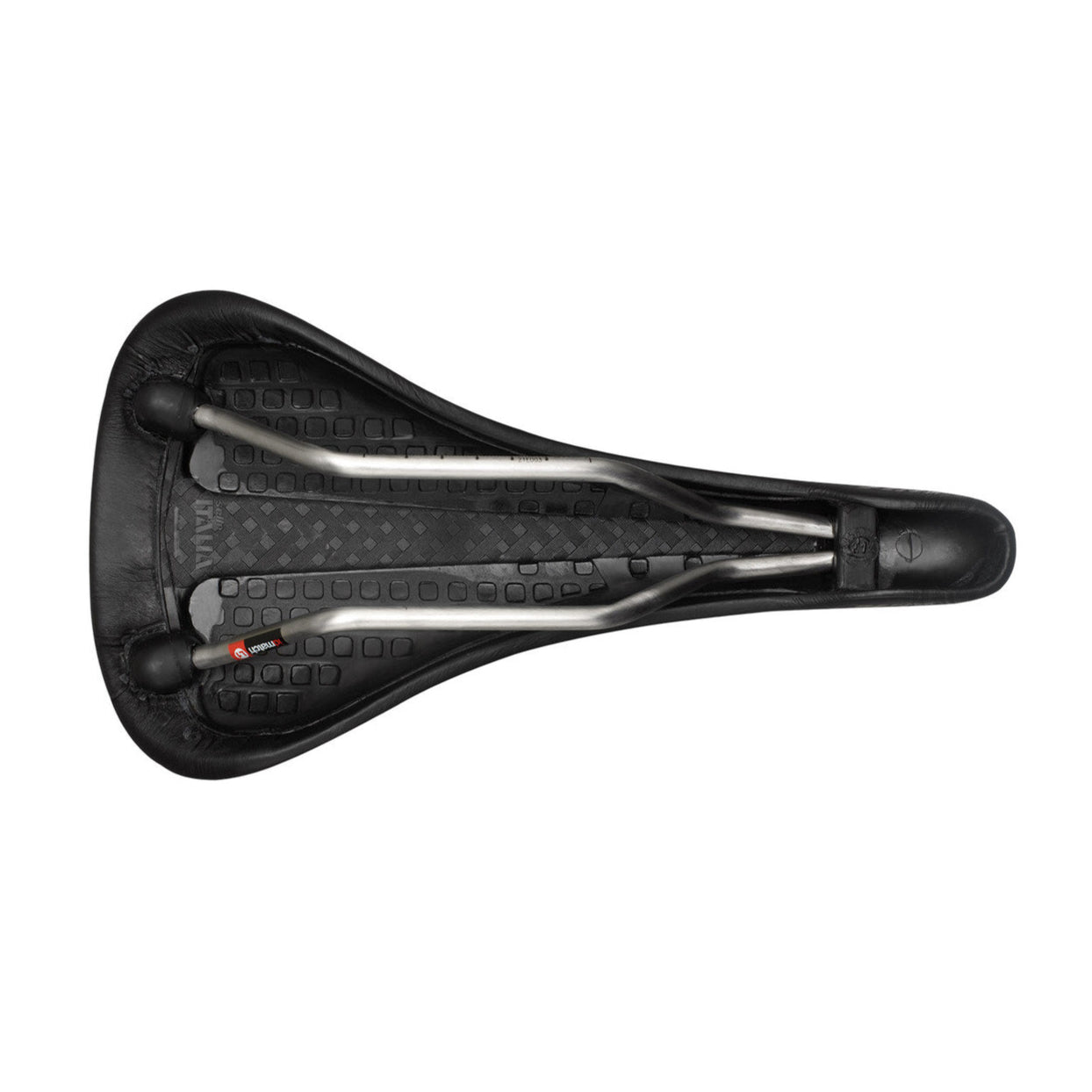 Handmade in Italy using a custom-stitched genuine leather cover w/ 10% carbon shell & 7mm titanium rails.