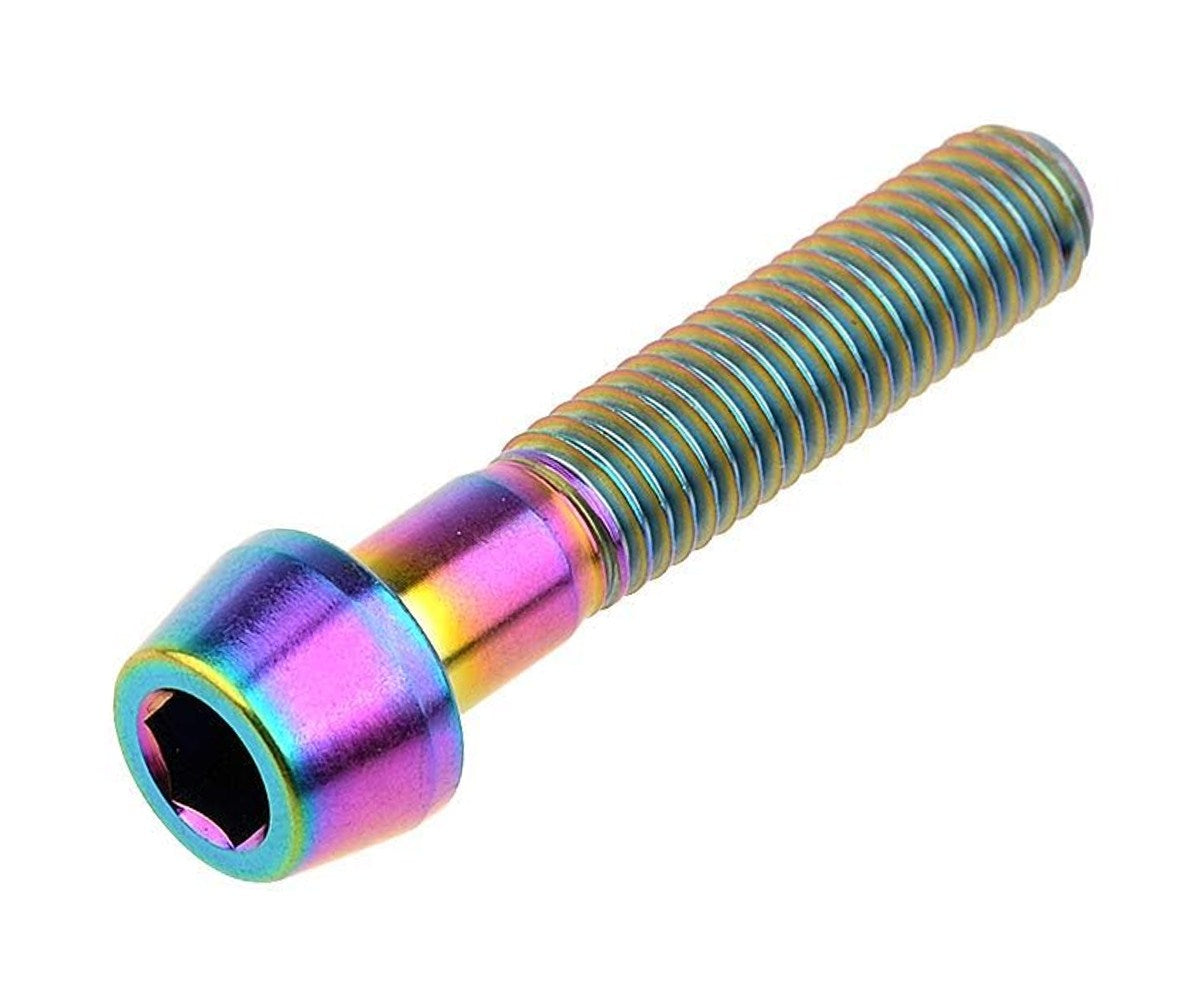 These top quality titanium replacement bolts are 40mm long with 30mm of threads, and are available in three colors - gold, black and rainbow oil slick.